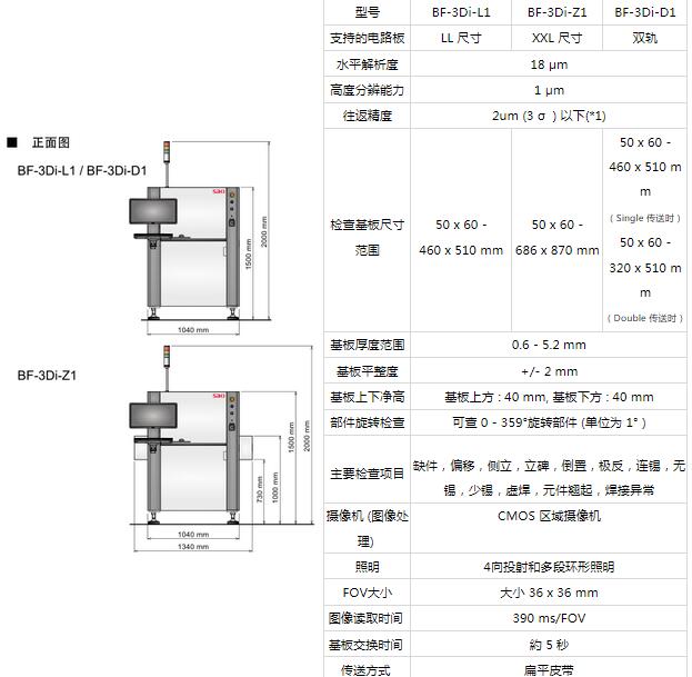 SAKI在線在線AOI自動(dòng)光學(xué)檢測儀BF-3Di參數(shù)簡介: