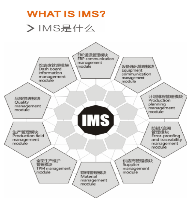 IMS智能制造管理系統 MES是一套獨特的閉環式電子制造智能管理解決方案。通過對物流,產品流及信息流的全過程優化,以智能制造為核心理念,提供了一系列獨特的管理方式和管理工具。實現減員增效,提高產品品質,降低生產成本,全面防錯及可追溯管理。