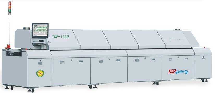 top-1000回流焊是一款高產(chǎn)能,低功耗的高端無(wú)鉛微循環(huán)熱風(fēng)回流焊。在表面組裝工藝生產(chǎn)(SMT)中,用于焊接貼片器件的焊接專用生產(chǎn)設(shè)備。